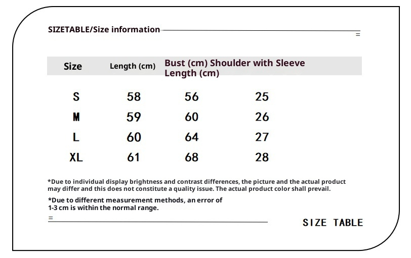 1. Asian sizes are 1 to 2 sizes smaller than European and American people. Choose the larger size if your size between two sizes. Please allow 2-3cm differences due to manual measurement. 2. Please check the size chart carefully before you buy the item, if you don't know how to choose size, please contact our customer service. 3.As you know, the different computers display colors differently, the color of the actual item may vary slightly from the following images.